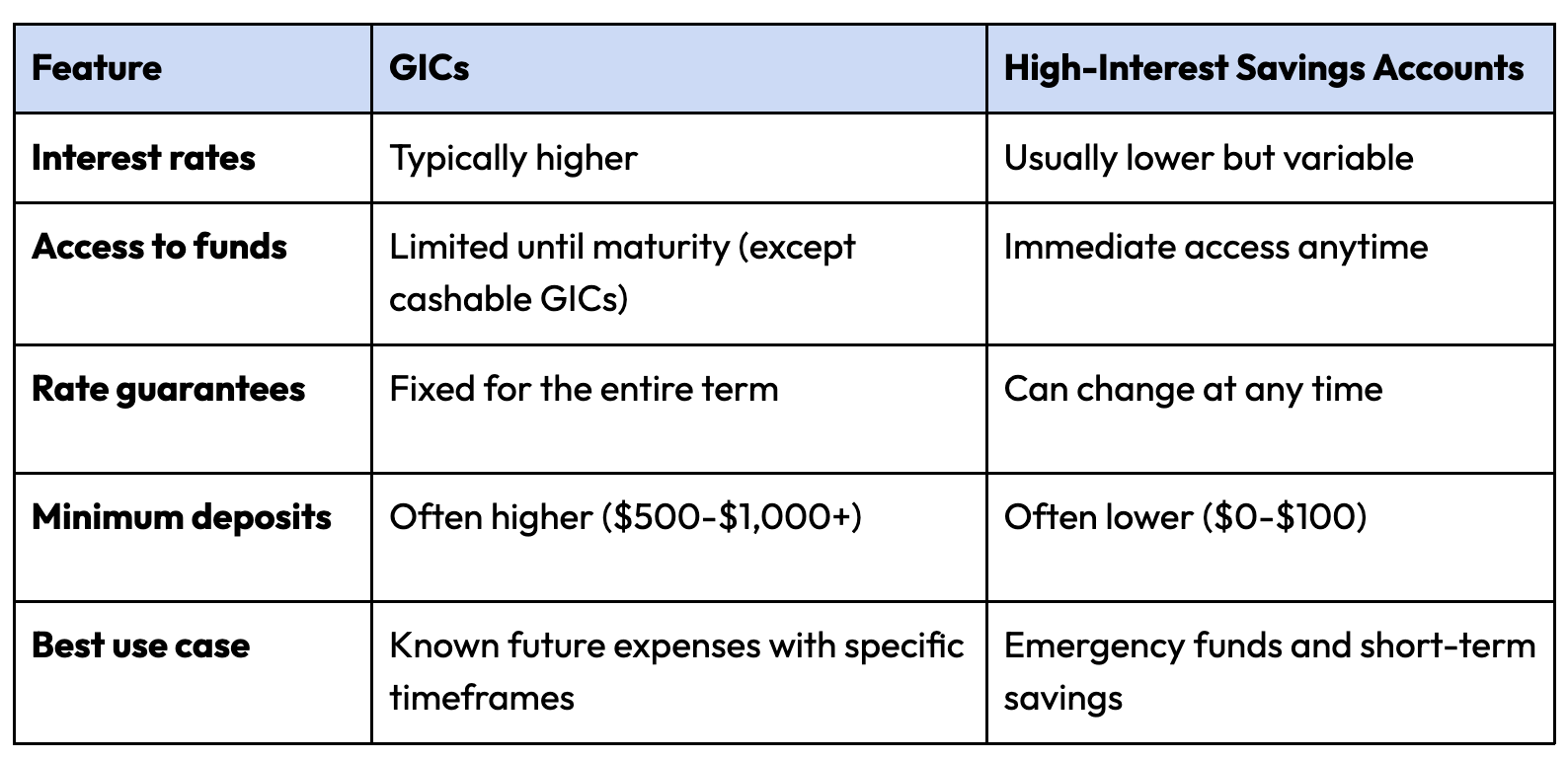 Many financial experts recommend using both: HISAs for emergency funds and immediate liquidity needs, and GICs for longer-term savings with specific time horizons.